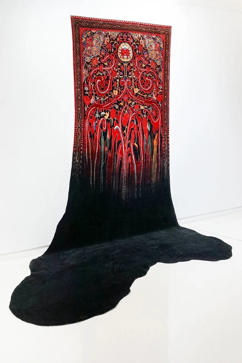 Все мы помним скучные ковры, висевшие когда-то на стенах в наших домах: многие разглядывали узоры на них в попытках уснуть. Кстати, что означали эти узоры, мы рассказывали в этом материале. Но ковры Фаига Ахмеда перестают быть просто предметами интерьера. Художник превращает древние азербайджанские традиции ткачества в инновационные арт-объекты, которые меняют привычные представления о декоративно-прикладном искусстве.