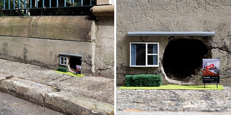 Прогуливаясь по улицам Сиднея, легко пропустить крошечные арт-объекты Майкла Педерсона. Но нужно смотреть под ноги, вдруг поблизости есть маленькая табличка, которая привлечет ваше внимание и заставит остановиться. Художник более десяти лет создает остроумные уличные инсталляции и превращает обычные трещины в стенах и ямы в асфальте в миниатюрные театры и аэропорты.