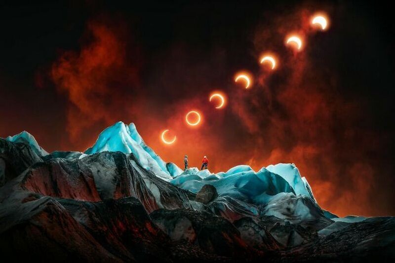 Огонь и лед: альпинисты поднялись на ледник в горах, чтобы понаблюдать за затмением