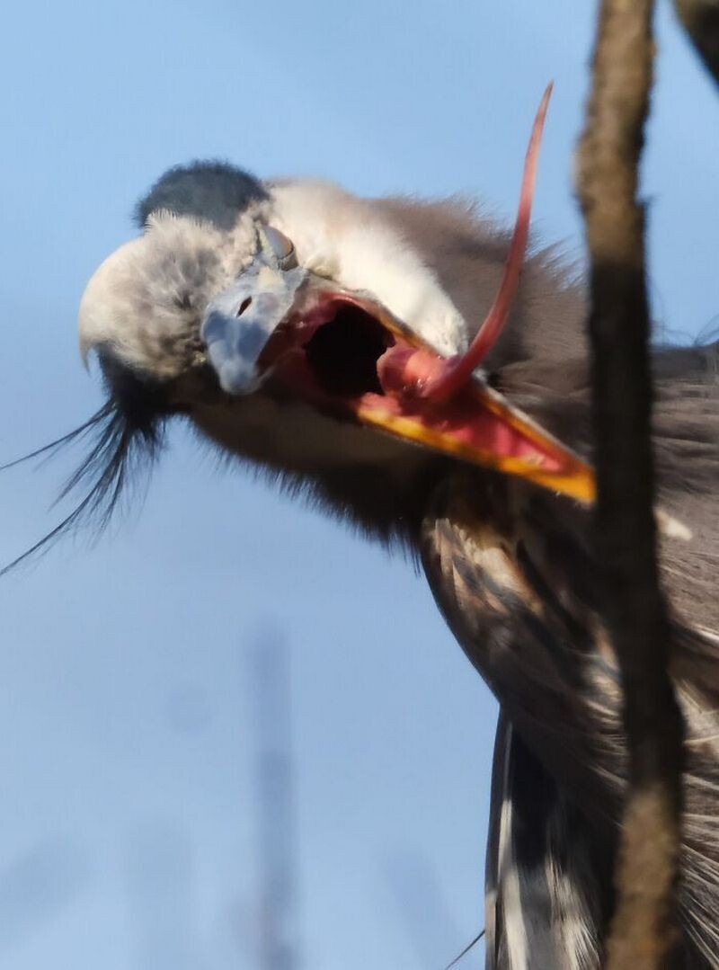 А если не заказывали танец, то вот вам мордочка голубой цапли