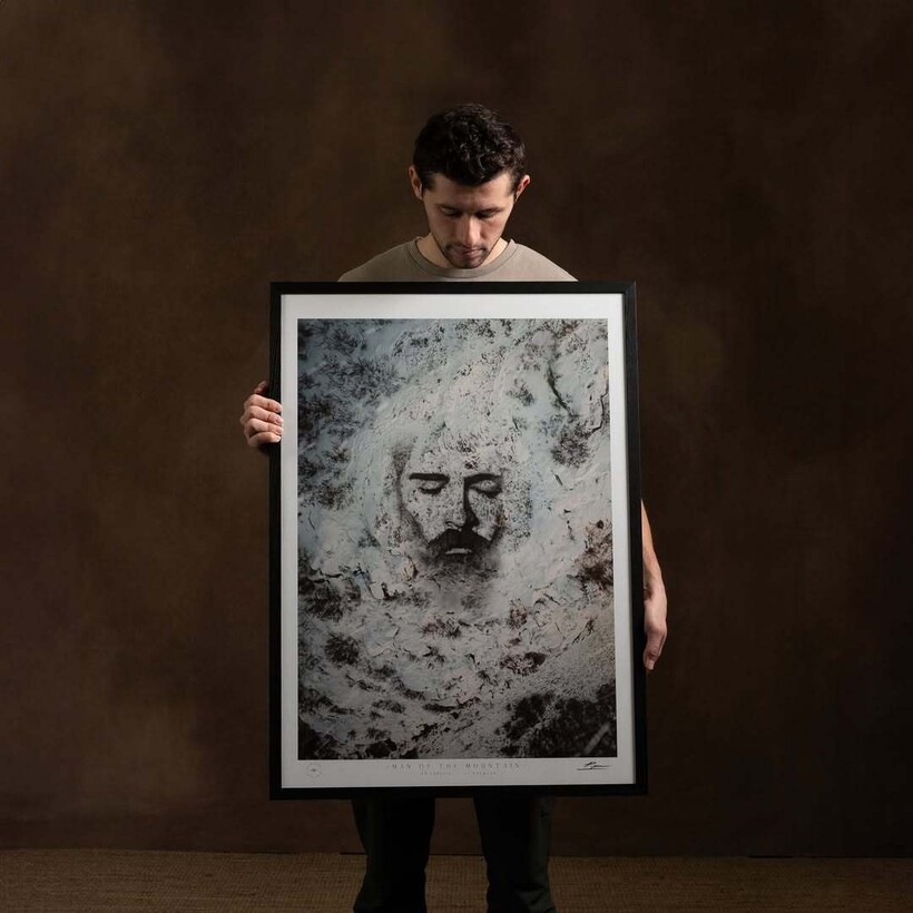 Он использует мел и уголь для создания эфемерных портретов на застывшей лаве