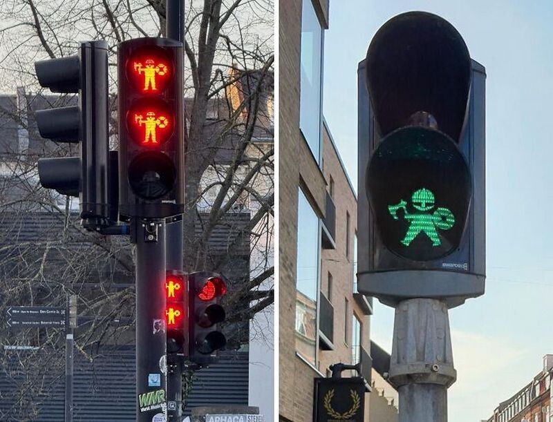 Детская площадка в Копенгагене с пешеходными переходами и светофорами, где дети учатся ПДД