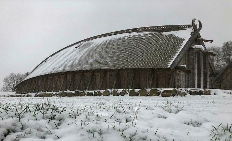 Реконструкция зала викингов VIII века в коммуне Лейре