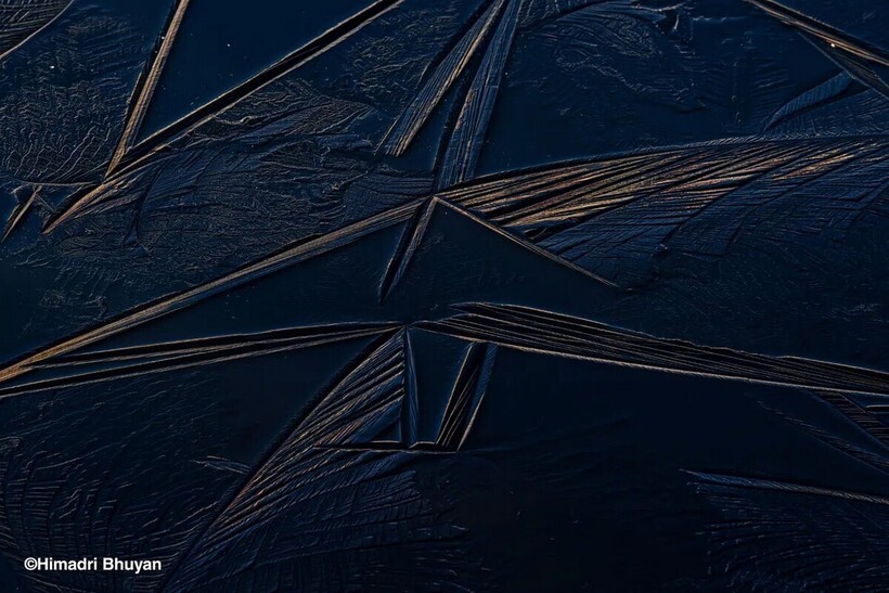 Замерзшее озеро в Индии, покрытое ледяными узорами