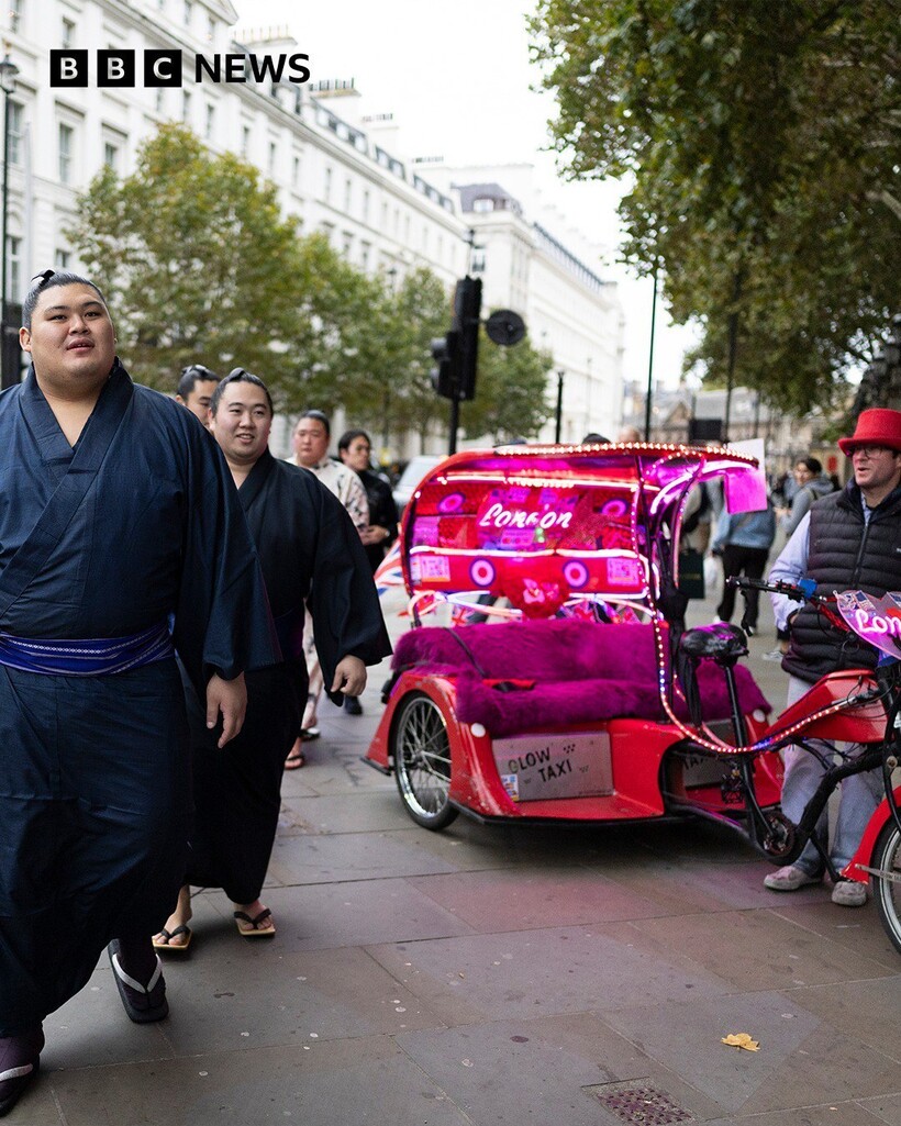 Борцы сумо прогуливались по Лондону в традиционных юкатах, привлекая всеобщее внимание