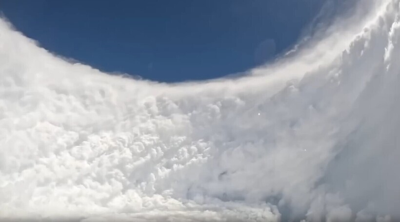 После того как самолет преодолел плотные облака, перед экипажем открылся потусторонний вид: повсюду была высокая стена из клубящихся облаков, а внутри всего этого ― жуткая пустота.