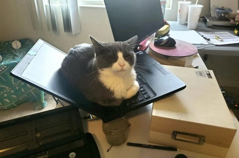 Кот словил дзен, а вот хозяин ноутбука ― вряд ли