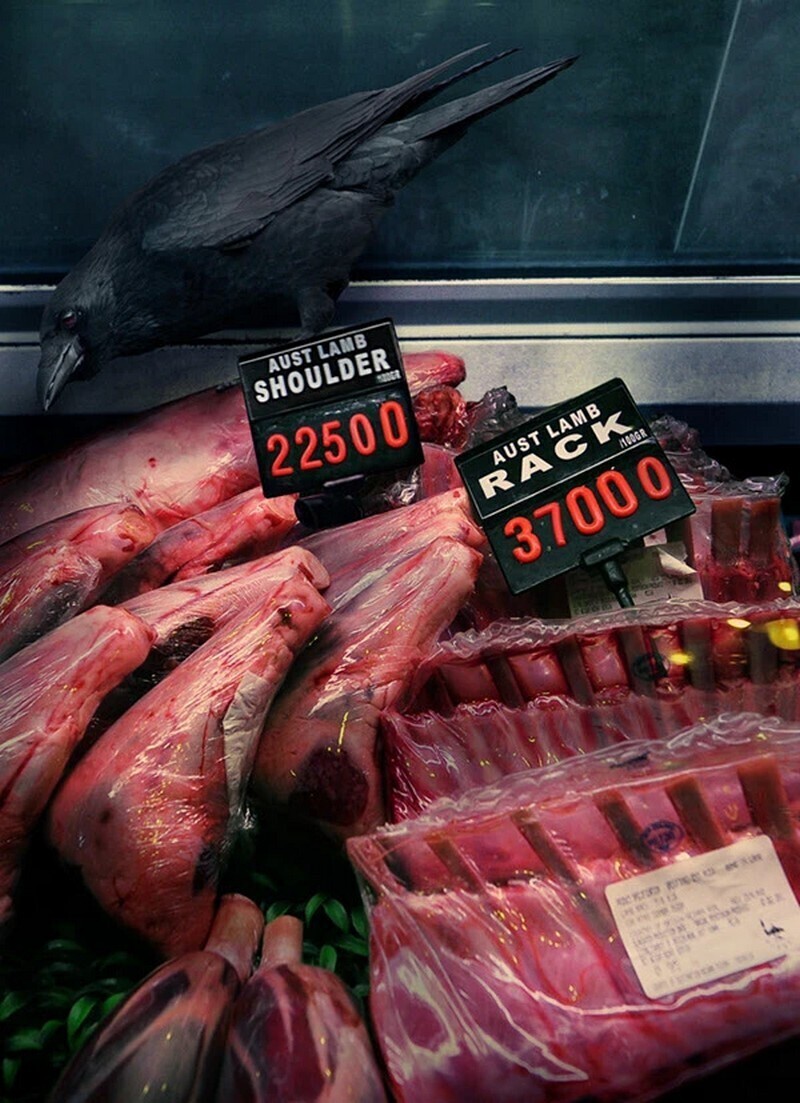 В серии работ Garden Fresh художник поместил диких зверей туда, где их присутствие кажется абсурдным, ― в супермаркеты и торговые павильоны. Олени бродят между стеллажами, тигры останавливаются у холодильников, а кролики прячутся среди салатов и другой зелени. Не переживайте: все изображения созданы с помощью дизайнерских программ, так что ни одно животное не испытывало даже малейшего дискомфорта.