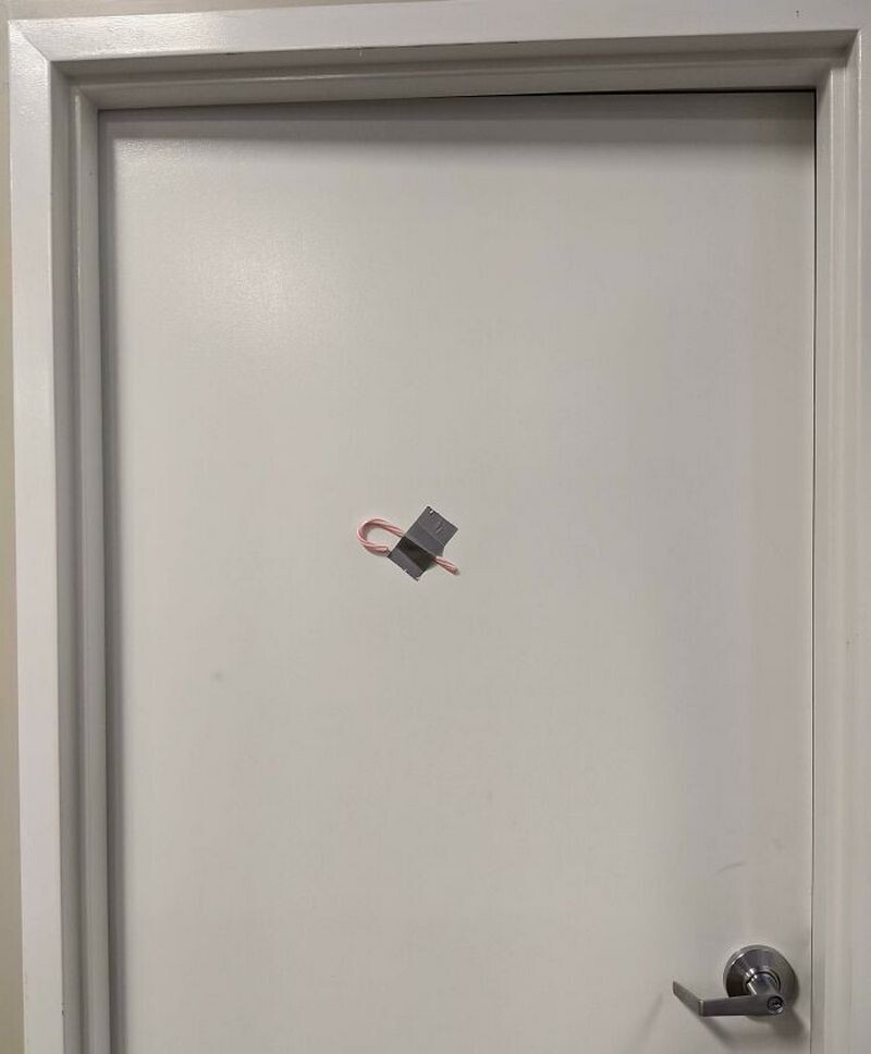 А кто-то не справился с украшением двери кабинета