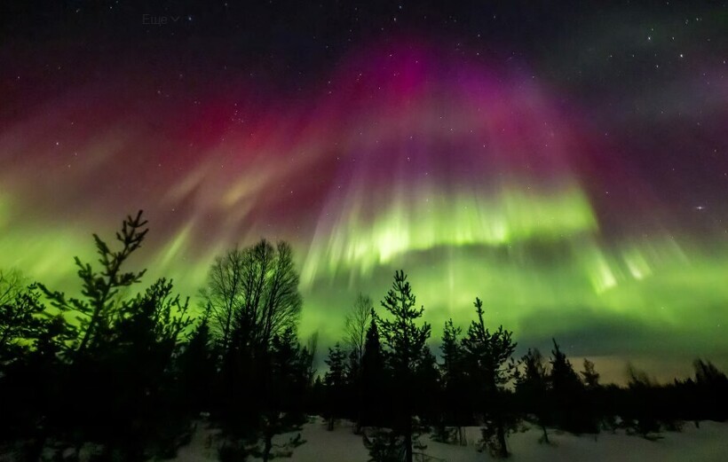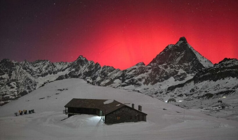 Северное сияние освещает ночное небо в регионе Валле-д'Аоста, Италия