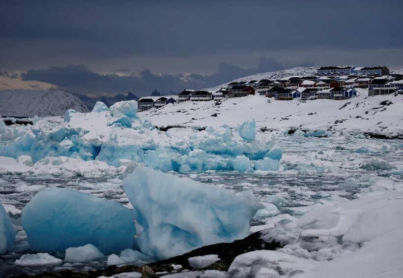 Льдины плавают перед домами в столице Гренландии Нууке