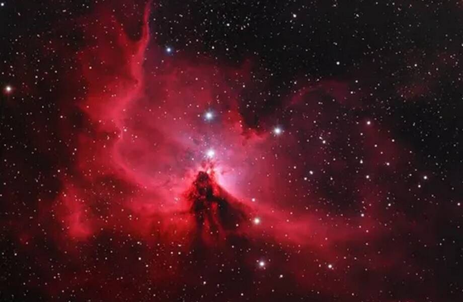 Туманность представляет собой сложную структуру, включающую несколько отдельных объектов. В верхней части снимка видна Коническая туманность, по форме напоминающая маленькую перевернутую елочку. В центральной области расположилась туманность «Лисий мех», и она добавляет «елке» объем и текстуру. Ну чем вам не космический праздник?