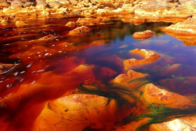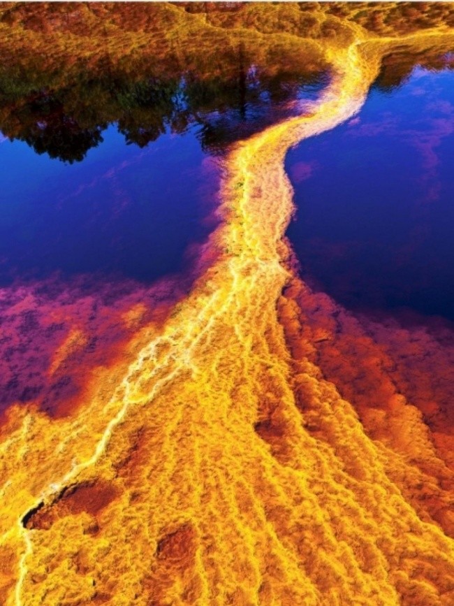 На фотографии не настоящий огненный торнадо (которого на самом деле не существует), а отходы горных работ, плывущие по реке Рио-Тинто в Испании. В результате работ, которые продолжаются в регионе уже несколько веков, река стала кислотной. Яркий красный цвет воды получается из-за большого содержания в ней тяжелых металлов.