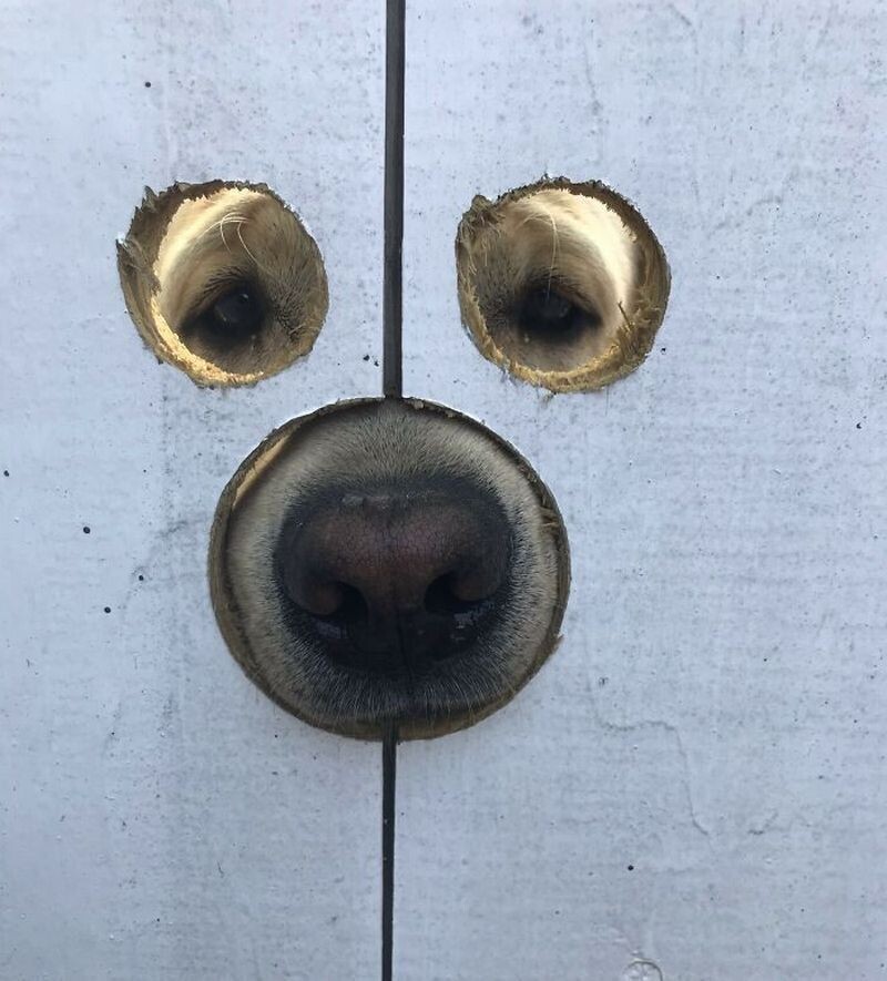 Когда сделал в заборе дырочки для собаки, чтобы она могла наблюдать за внешним миром и принюхиваться