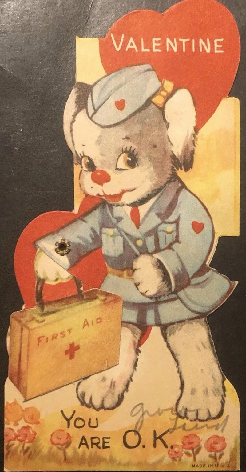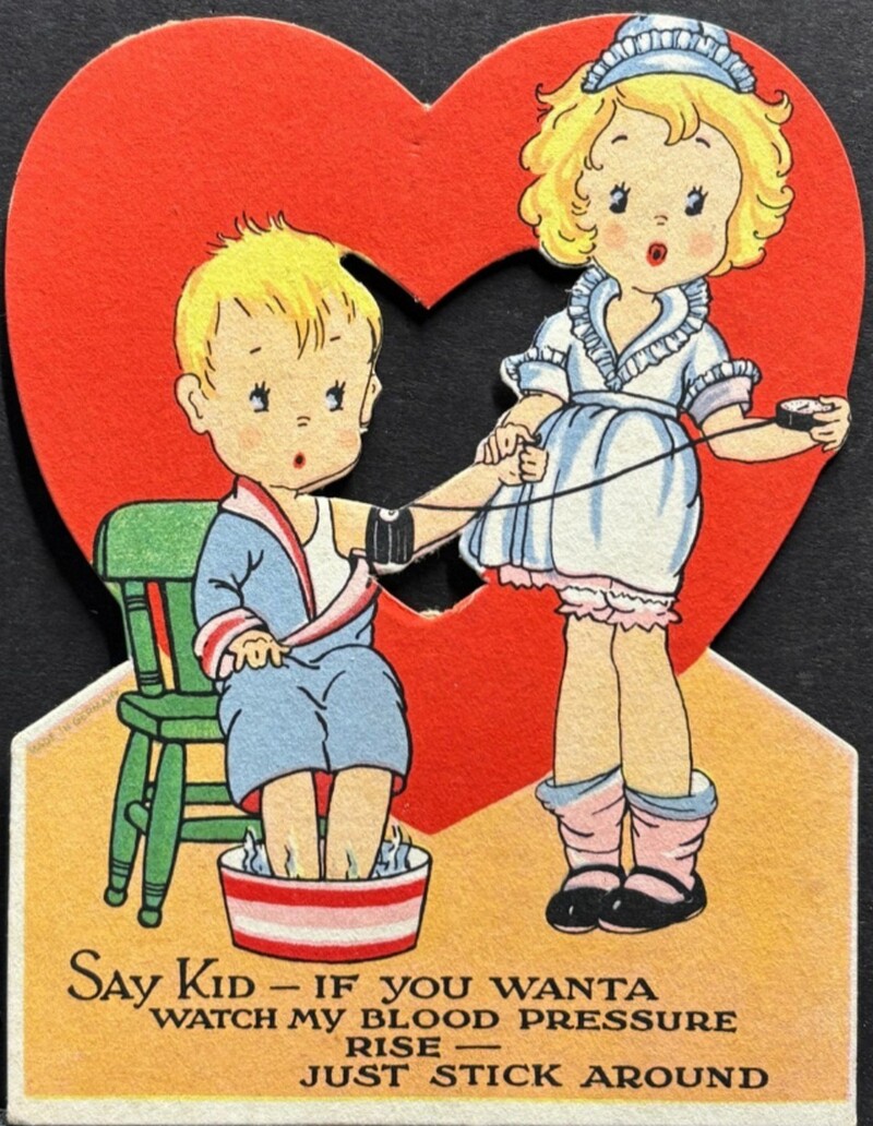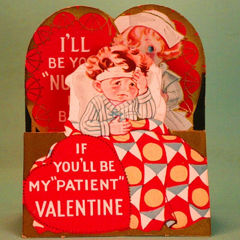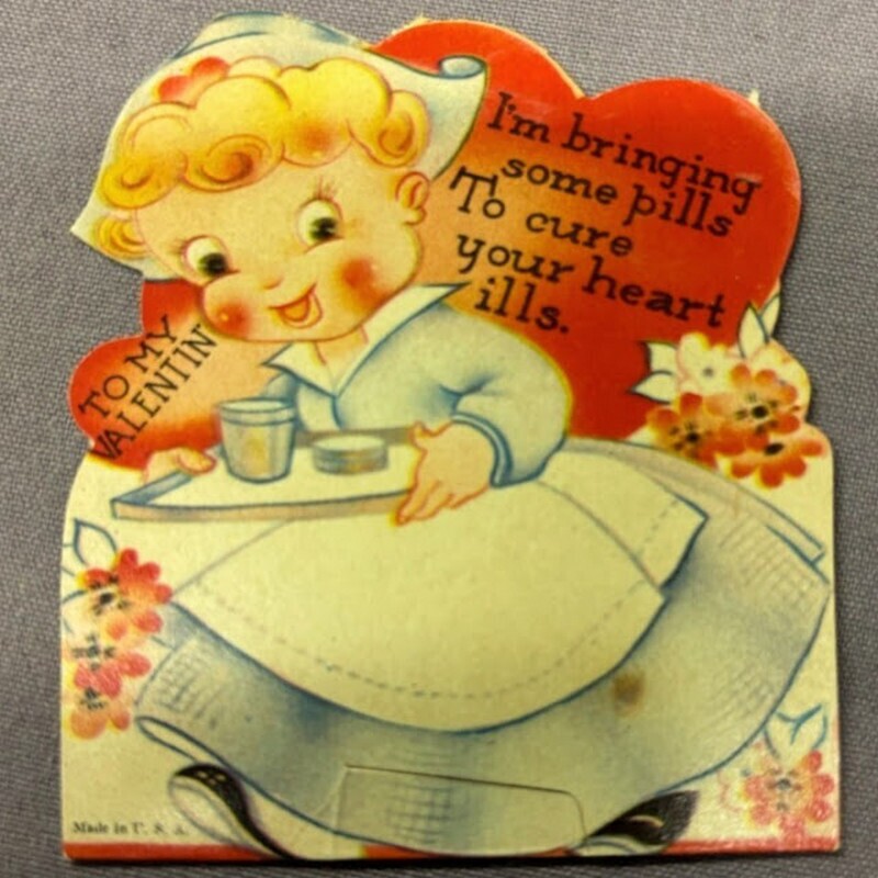 День святого Валентина в Америке и Европе отмечался еще в начале XX века, а открытки тогда были одним из главных способов выражения романтических чувств. Кстати, откуда вообще появился этот праздник, и как он связан с римскими вакханалиями, мы рассказывали в этом материале. В эпоху, когда прямые признания в любви считались слишком смелыми, валентинки позволяли передать послание с долей юмора и игривости. Особую популярность приобрели открытки с медицинской тематикой ― врачи и медсестры на них становились символами исцеления не только тела, но и сердца.