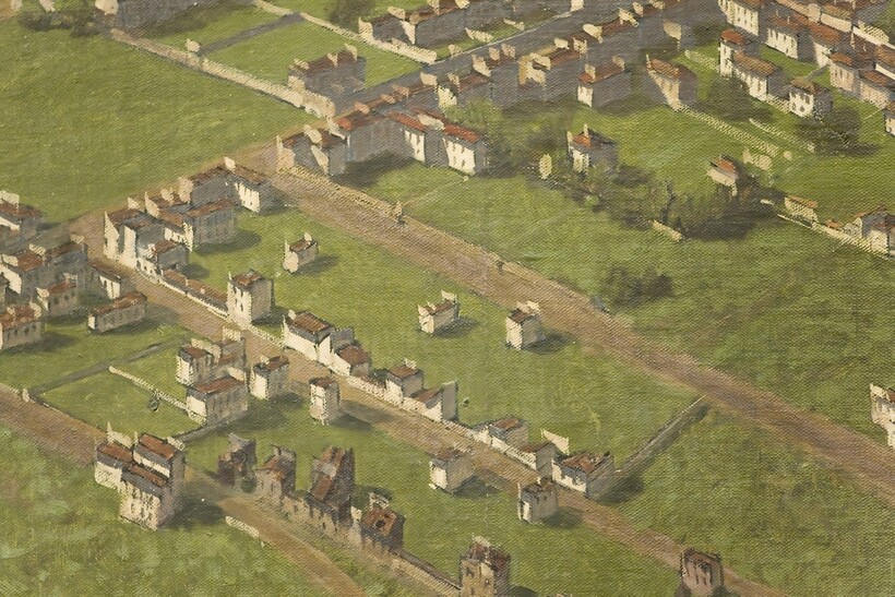 Чтобы написать картину, Навле несколько раз летал над городом на воздушном шаре. Художник делал быстрые зарисовки карандашом прямо во время полета, фиксировал улицы, силуэты зданий и особенности их фасадов, крыши. После каждого такого путешествия начиналась кропотливая работа в мастерской. Навле переносил наброски на холст, где уже добавлял нюансы и цвет. Он рисовал больше года и создал нечто невероятное: уровень детализации позволяет различить детали городского пейзажа.