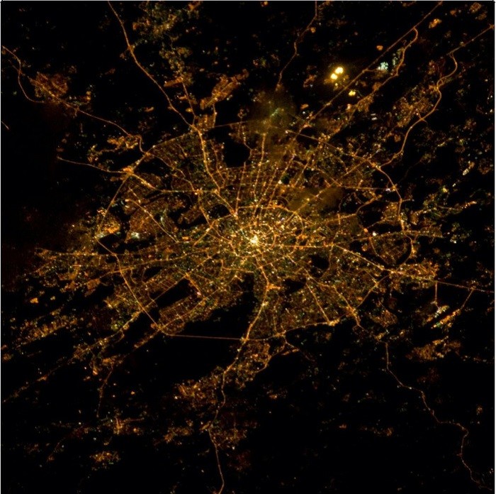 Огни, разбросанные по поверхности земли, похожи на гигантскую паутину.