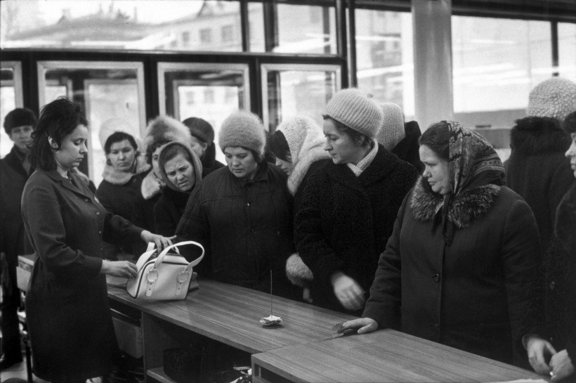 Очередь в магазине на Арбате. СССР, Москва, Арбат, 1972 год.