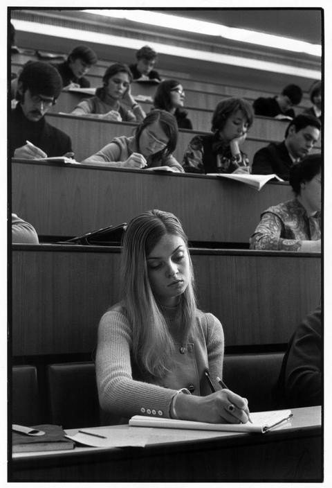 Студенты МГУ, пишущие лекцию. СССР, Москва, 1972 год.