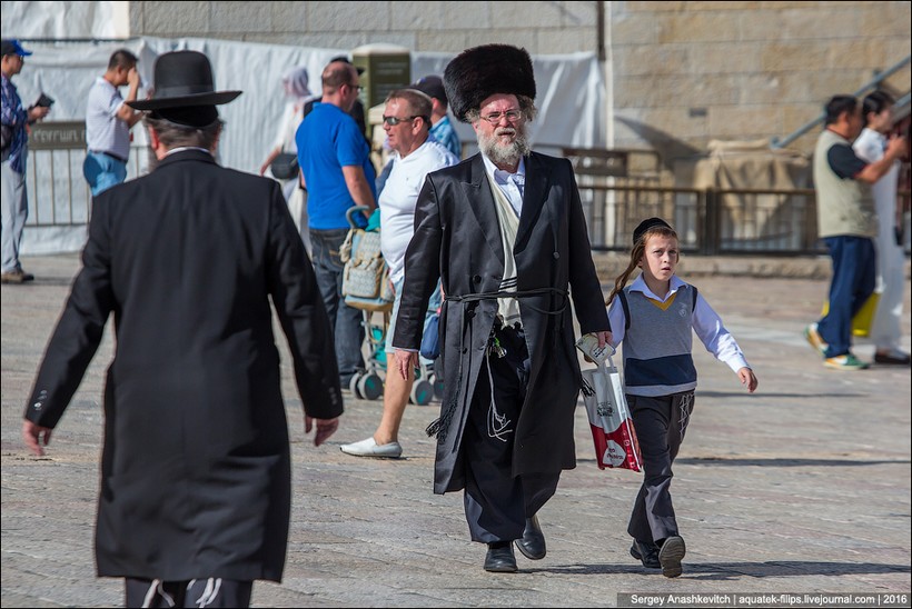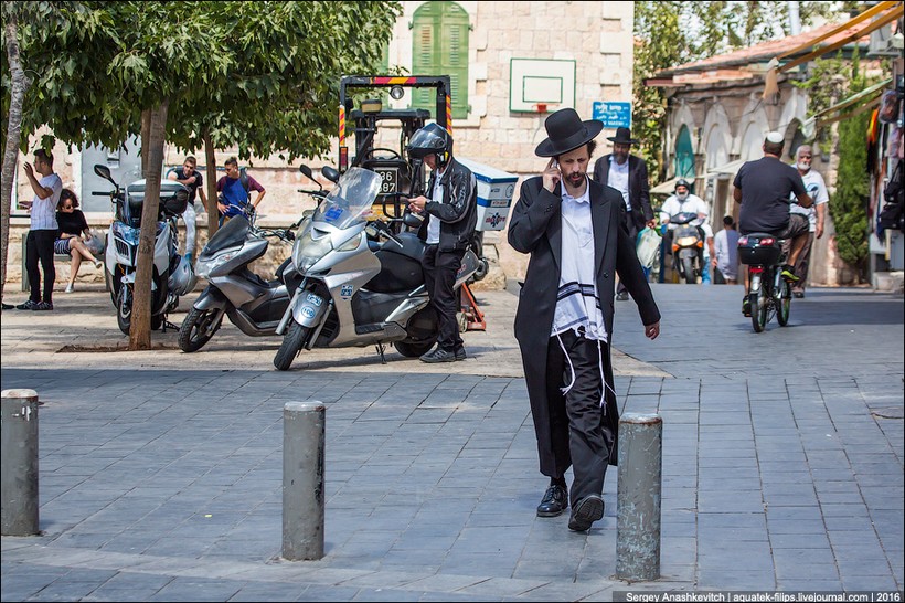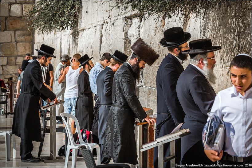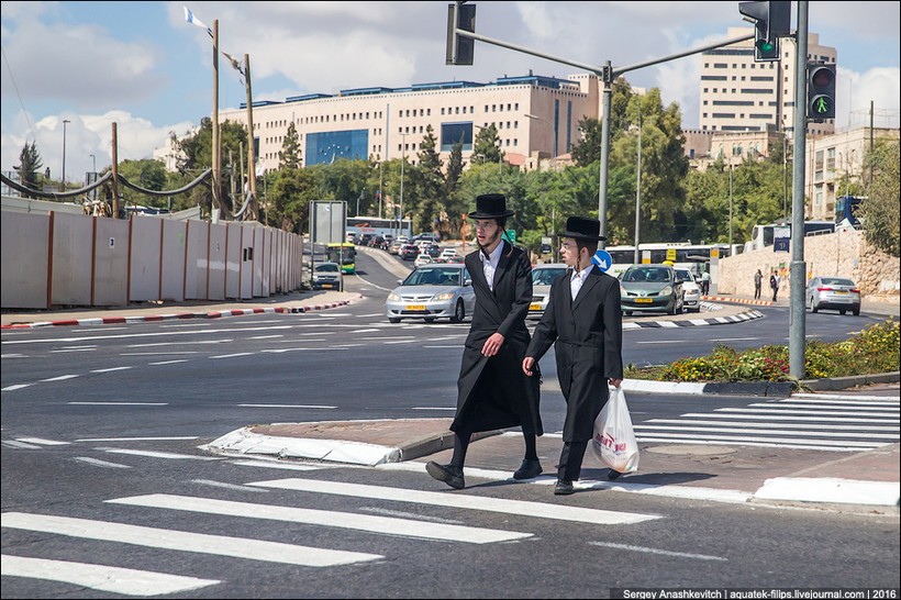 Если вы думает, что они все одинаково черно-белые, то очень ошибаетесь. Оказывается, только черных шляп существует 34 вида, каждый из которых несет информацию о своем хозяине. Знающие люди по цвету чулок, материалу лапсердака и форме головного убора могут точно указать: это йерушалми, это хасид такого-то адмора, это бахур, а этот уже женился.