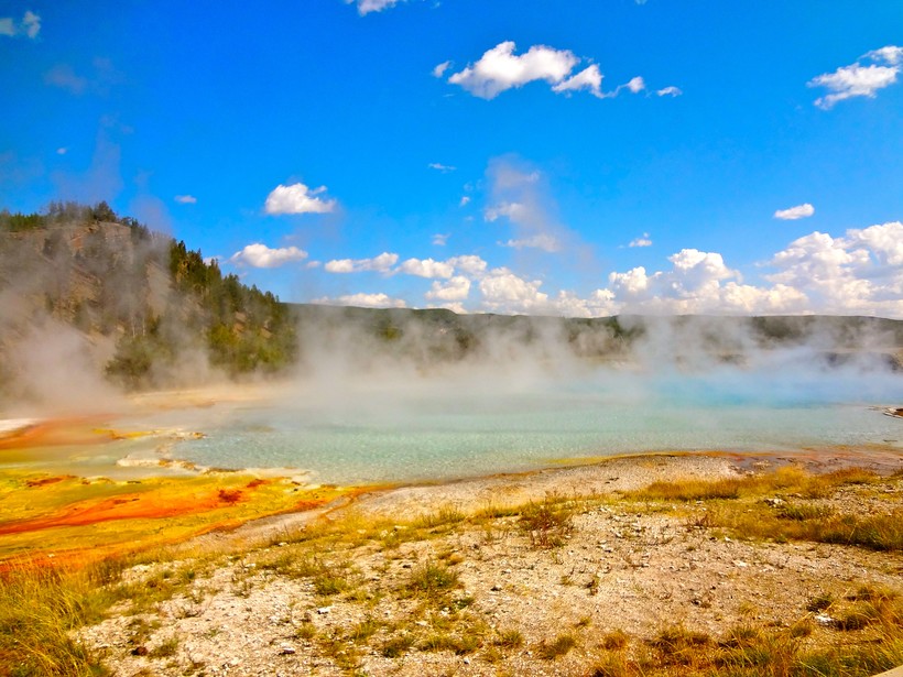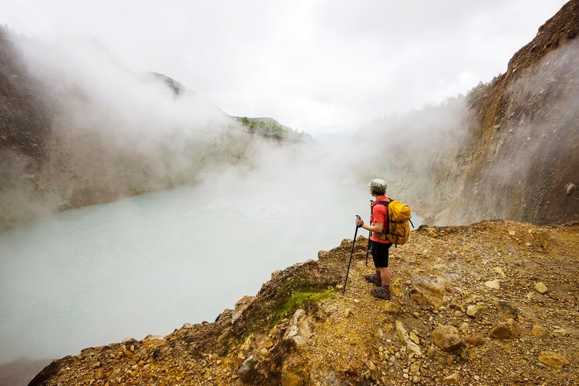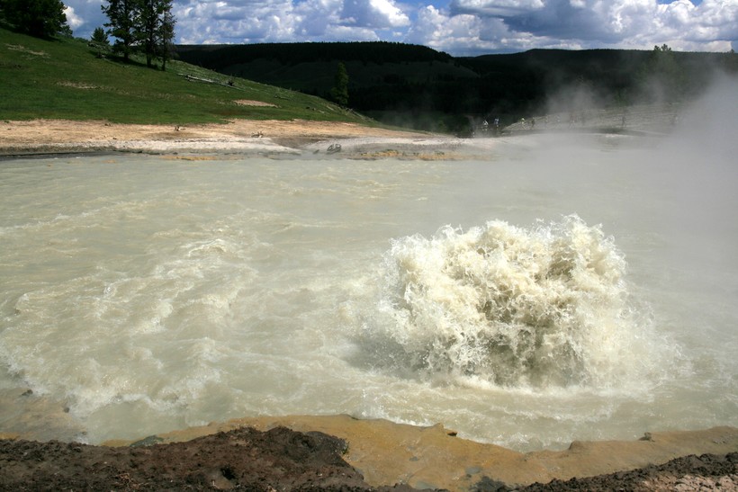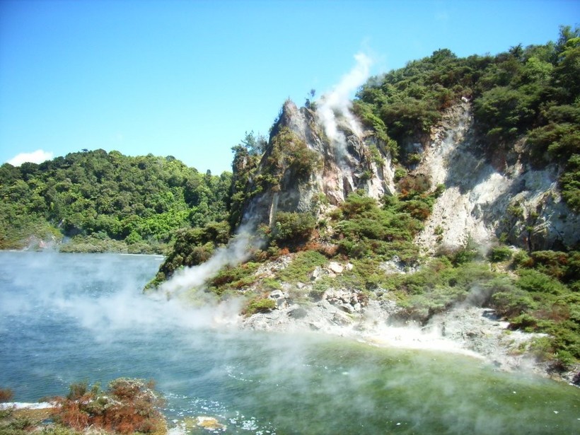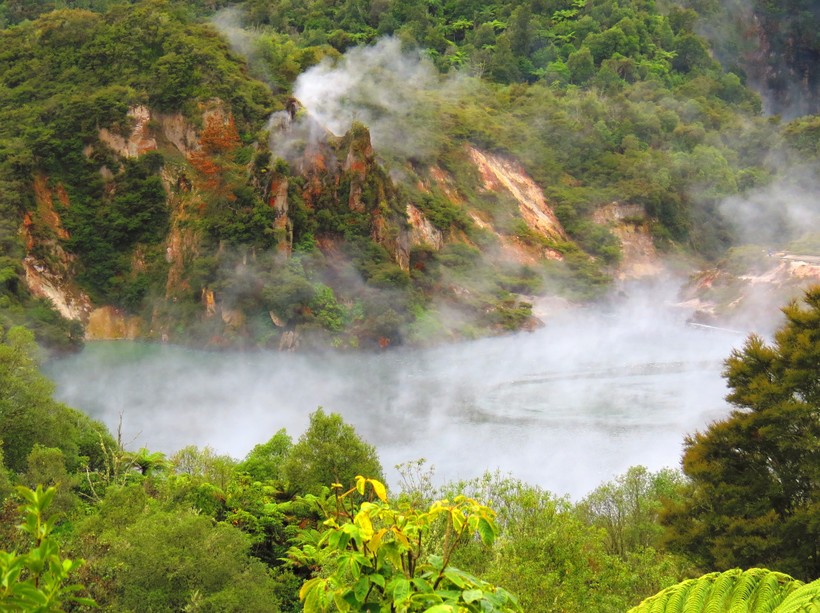 Над этим водоемом тоже нависает облако пара, однако, в отличие от Кипящего озера, оно тут круглый год, и температура воды тут примерно всегда одинаковая — около 55 градусов.