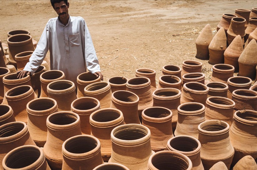 Продавец керамики. Эти большие горшки называются олья (olla), они используются для хранения воды и защищают ее от нагревания.