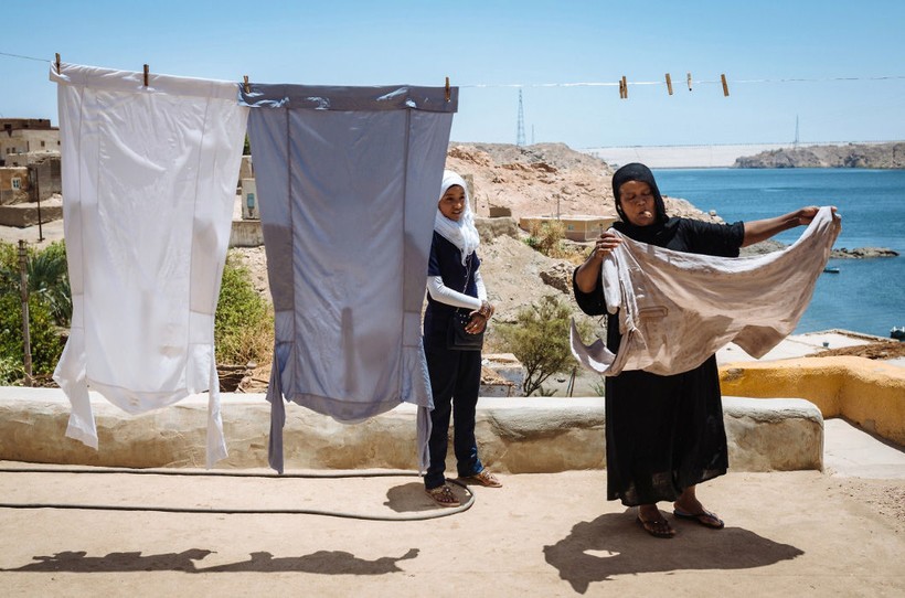 Нил — река жизни для всего региона. Остров Хейза, где живут сейчас нубийцы, был частично затоплен во время строительства Асуанской плотины. Покинув старые дома, жители построили новые, на этот раз — гораздо выше уровня моря.