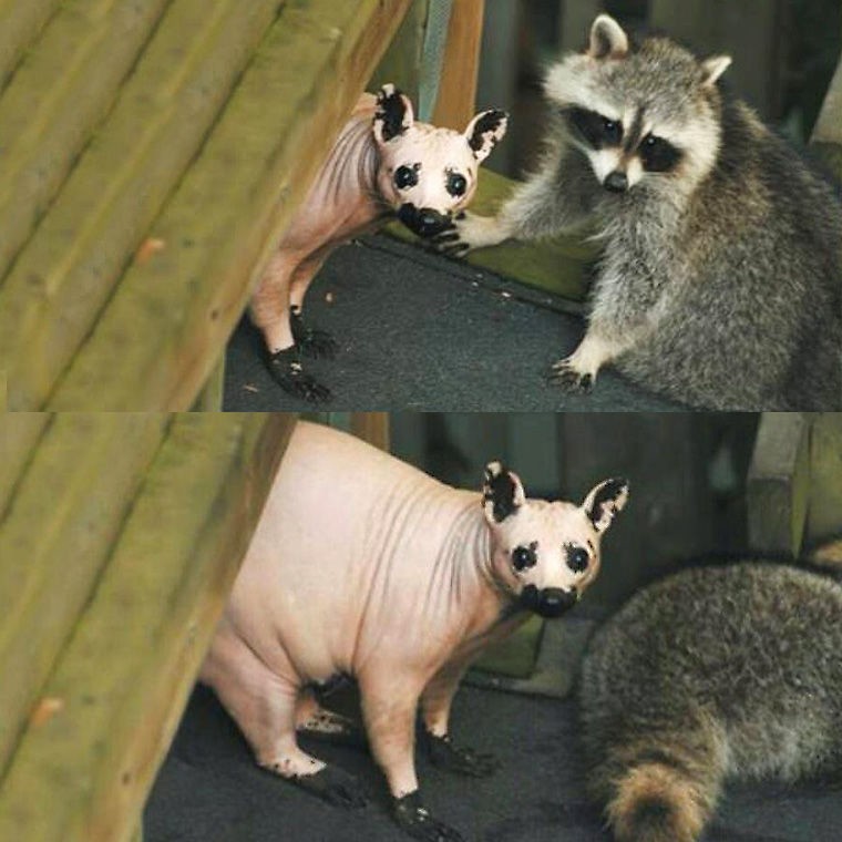 Этот енот пострадал от грибковой инфекции, которая спровоцировала чесотку. В результате животное потеряло шерсть