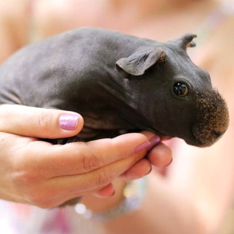 Свинка имеет немного растительности на теле, но большая его часть лысая, что дает возможность любоваться очаровательными складками