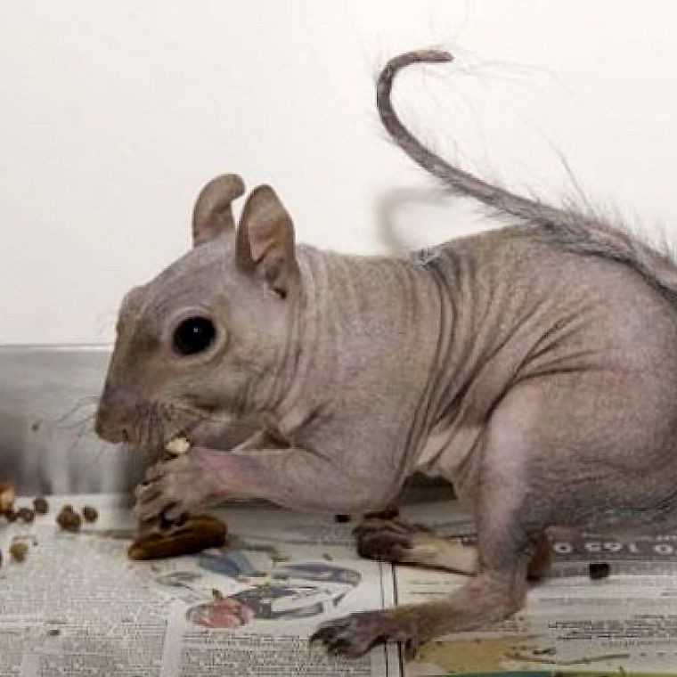 Отсутствие шерсти у крысы на снимке — результат генных экспериментов, вызвавших облысение