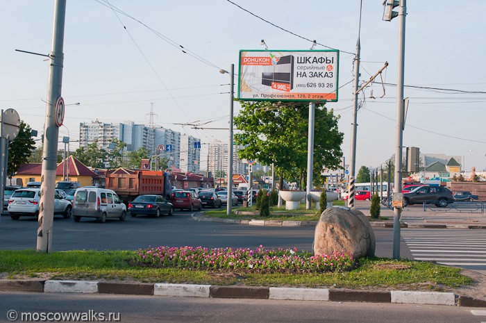 Неподалеку от метро когда-то находилась вышка и геодезический знак, которые указывали, что это и есть самое высокое место Москвы. Однако теперь тут с комфортом расположилась автостоянка. А еще рядом находится вот такой валун, который тоже символизирует самое высокое место города.