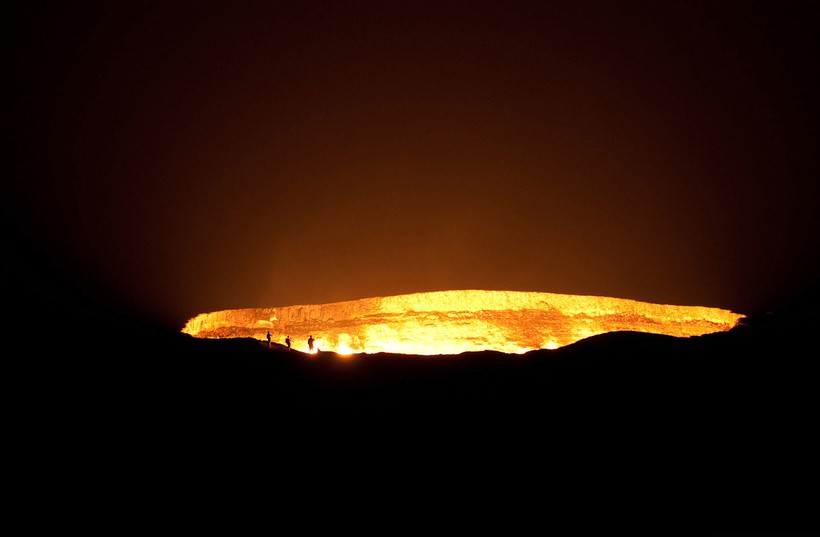 Дело в том, что тут в 1971 году проходили неудачные раскопки: во время бурения скважины провалилась часть земли и образовался катер. Он был наполнен газом, геологи решили его поджечь, чтобы уменьшить от него вред. Скважина так и горит до сих пор.