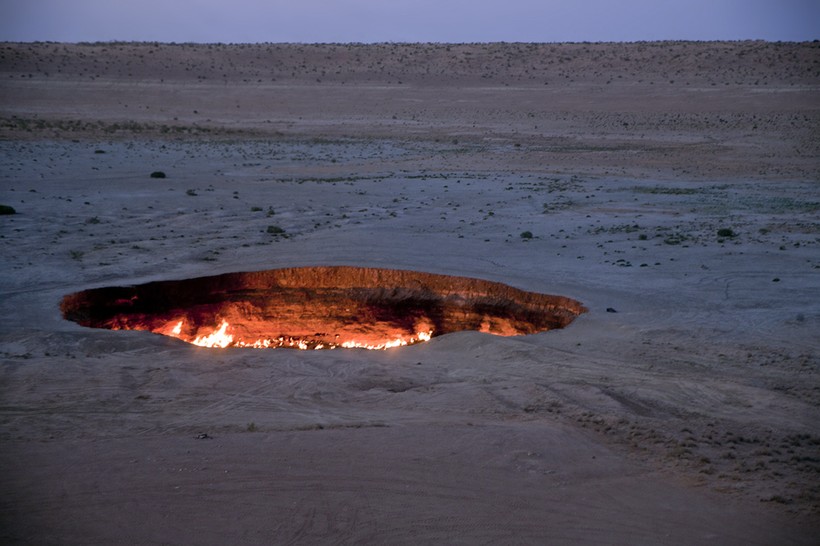 Это необычное место называется Дарваза или Врата Ада. Действительно, зрелище впечатляющее: яма диаметром около 60 метров, а глубиной ― около двадцати, горит пламенем уже более сорока лет.