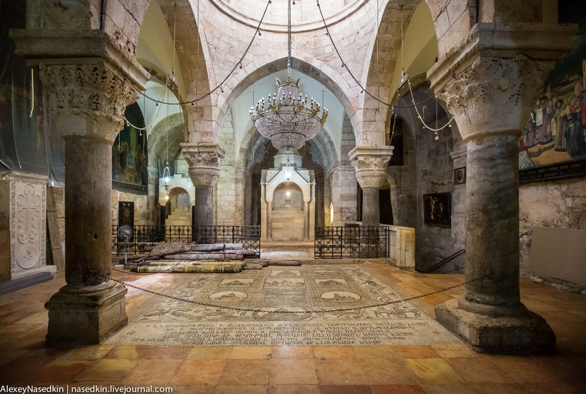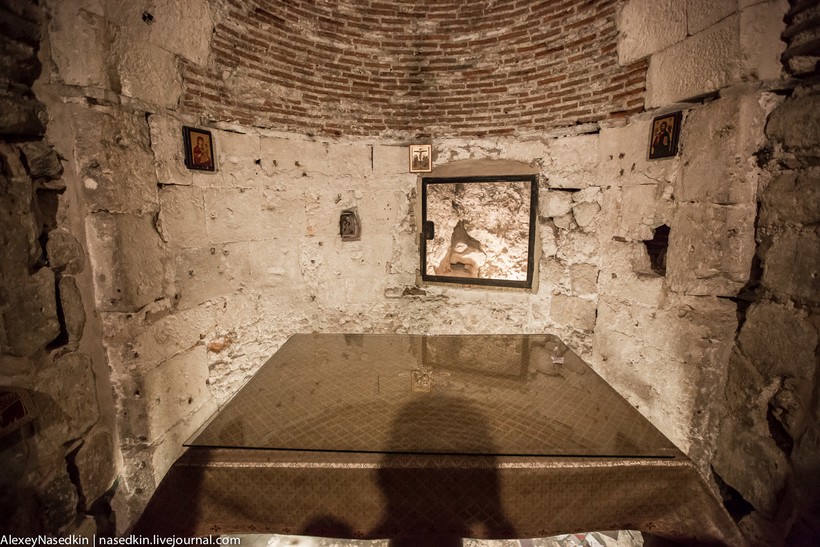 А вот и Голгофа. Кусочек скалы виден за стеклом.