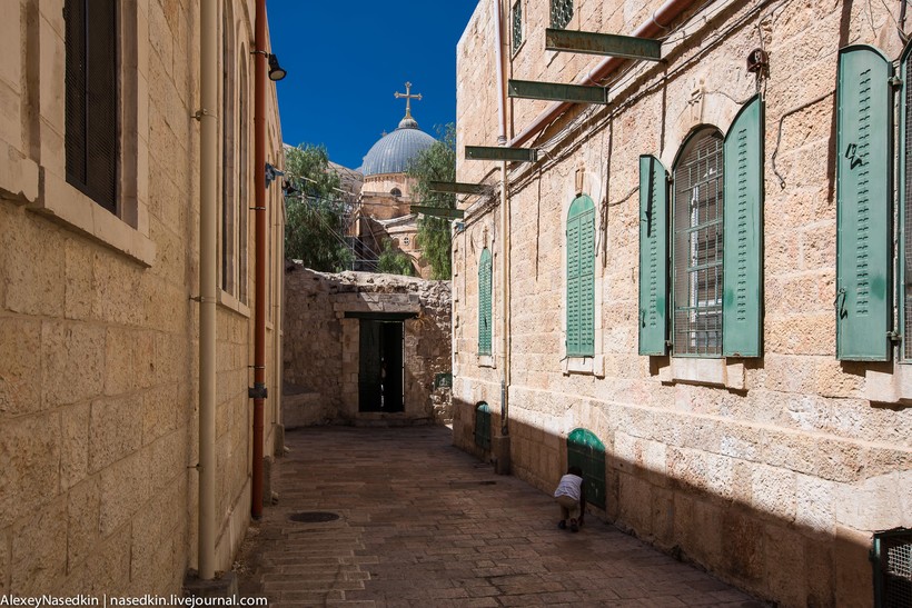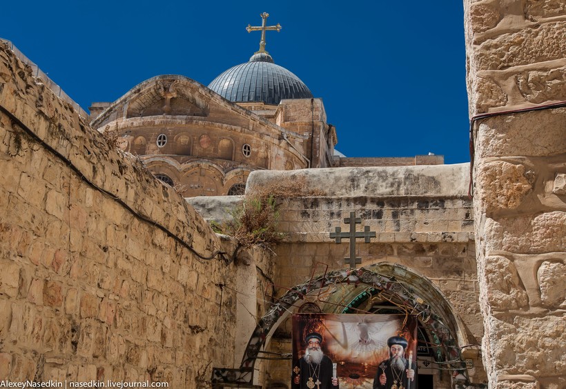 Вот таким предстает Храм Гроба Господня, если приближаться к нему, минуя Арабский квартал Иерусалима.