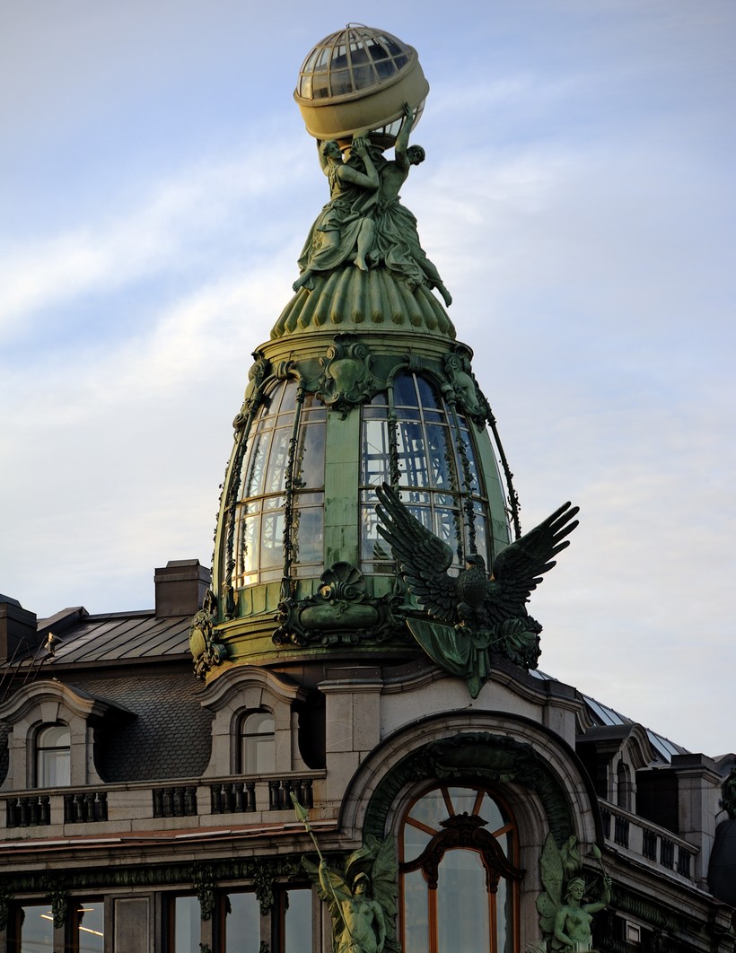 Выполненное в стиле модерн здание сейчас носит статус памятника федерального значения. Кстати, на его месте должен был находиться небоскреб, но это противоречило указу о строительстве высотных домов в Петербурге: они не должны были превышать 11 саженей. Так и появилась изящная башня, увенчанная стеклянным глобусом. Так архитектор вышел из ситуации, не затмив куполов главных соборов города.