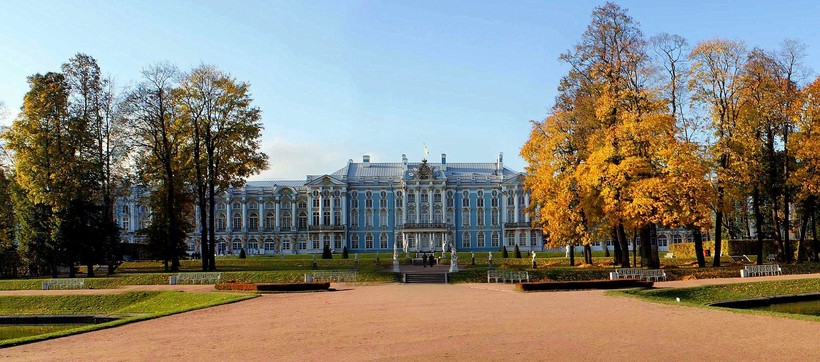 Дворец находится в городе Пушкин, бывшем Царском Селе. Это официальная летняя резиденция русских императриц: Екатерины I, Елизаветы Петровны и Екатерины II. Яркий образец позднего барокко. Сначала здание не особо отличалось богатством, однако Елизавета Петровна его реконструировала. Сейчас здание покрыто 99 килограммами золота.