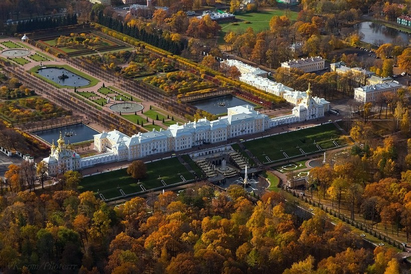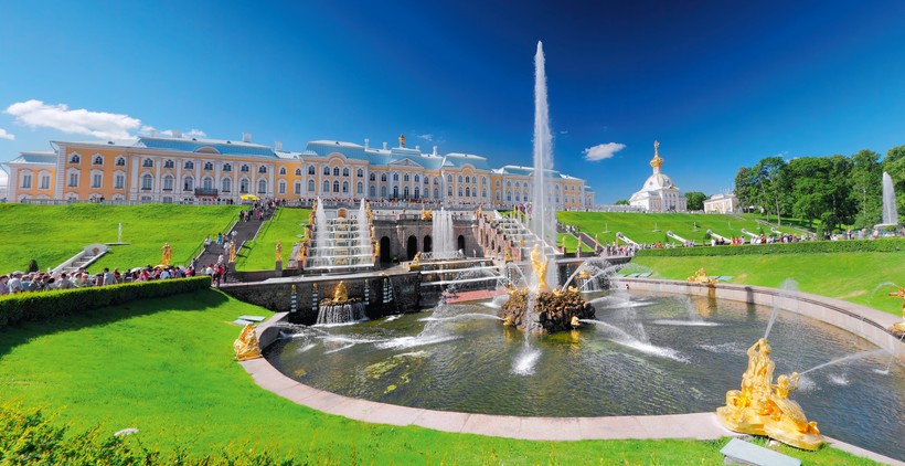 Это целый парковый ансамбль на берегу Финского залива. Главный дворец не очень большой, однако его внешний вид весьма впечатляет. Да и вообще, парком так и хочется любоваться: множество фонтанов, фрески и скульптуры, запечатлевшие героев античности и христианства.