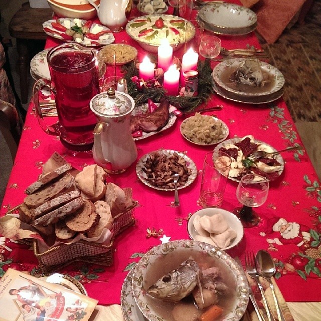 Польская традиция заключается в том, что на новогоднем столе должно быть ровно 12 разных блюд. И при этом никакого мяса. Супы, каши, картошка, клецки, выпечка. А во главе стола — рыба: заливная, запеченная, жареная. Здесь она считается символом семейного благополучия.