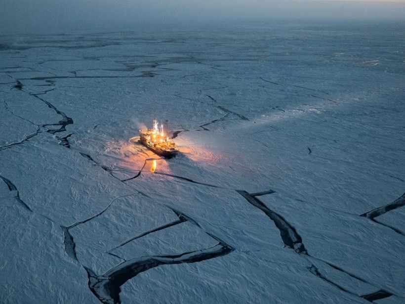 Норвежское научно-исследовательское судно дрейфует во льдах.