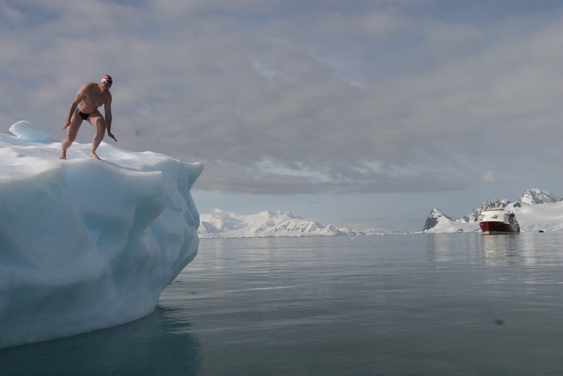 Таким образом он пытается привлечь внимание к проблемам экологии. Кстати, один из его заплывов, на Море Беллинсгаузена, должен состояться совсем скоро: в декабре 2016 года.