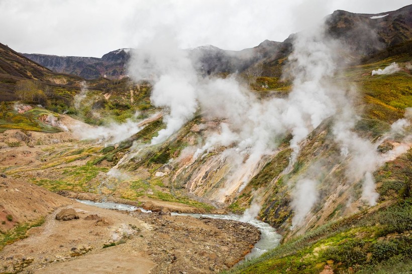 Долиной гейзеров условно называют небольшой участок горной реки Гейзерной, где сосредоточены все известные формы геотермальной деятельности: горячие озера, пульсирующие кипящие источники, парогазовые струи, грязевые котлы и, конечно, гейзеры. Весна на термальных площадках начинается месяцем раньше, чем на всем полуострове с его суровыми погодными условиями — в конце апреля. Бурые медведи, покинув свои берлоги, собираются у гейзеров, чтобы поесть свежую траву.