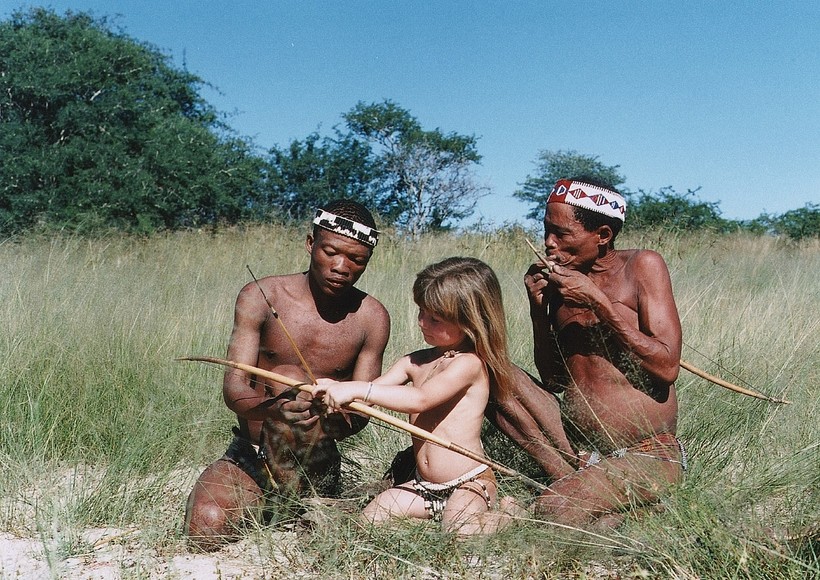 Аборигены из племен бушменов и химба, живущие в Калахари, научили девочку общаться на их языке, а также выживать, употребляя в пищу ягоды и корни растений.