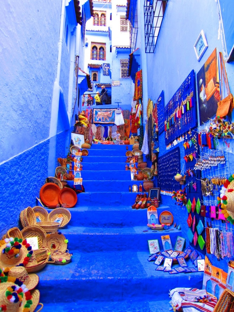 Этот колоритный город расположился в северной части Марокко. Шефшауэн играет оттенками от светло-голубого до темно-синего и даже фиолетового. Небесные цвета улиц и домов появились благодаря евреям-беженцам, приехавшим в Марокко в 1930-х. Двери, окна и стены в старом городе окрашены в священный для евреев цвет, который всегда напоминает им о небе и Боге. Хотя количество евреев с того времени значительно уменьшилось, традиция окрашивать дома, особенно к большим праздникам, осталась.