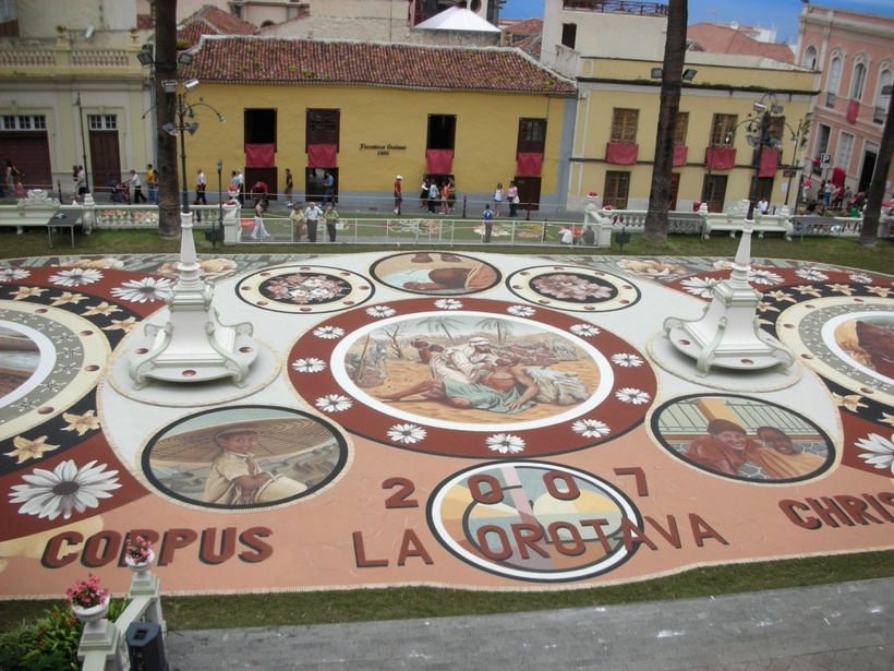 Ежегодно в июне в канун праздника Corpus Christi перед ратушей городка Ла-Оротава расстилается гигантский ковер. Он состоит из необычных картин, выполненных из вулканического песка. Песок добывают в кратере вулкана Тейде, расположенного на одном из Канарских островов. В изготовлении картин используют двадцать три оттенка песка, одна картина создается в течение 40 дней силами 10 человек. В 2006 году здесь установили рекорд Гиннесса, когда создали ковер площадью 950 квадратных метров.
