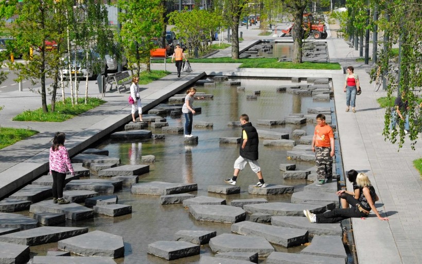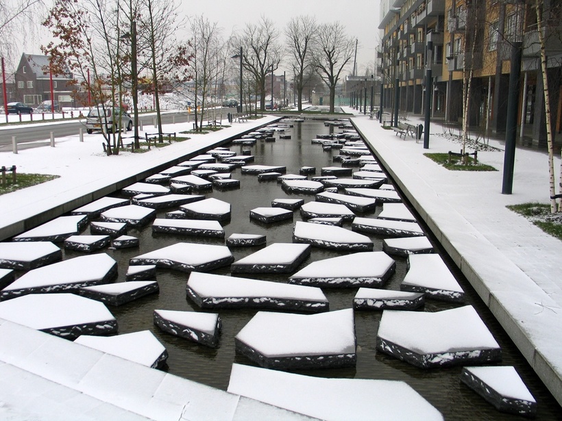 Roombeek — торговая улица в центре голландского города Энсхеде. Его судьба трагична и прекрасна одновременно. В 2000 году в этом месте произошел взрыв склада фейерверков, отчего 650 домов и улица были разрушены. Через несколько лет район полностью восстановили и вывели наружу подземный ручей. Дизайнеры обработали дно специальным покрытием, благодаря чему ручей постоянно покрыт рябью. Зимой осколки камней становятся похожими на осколки ледников, которые с наступлением оттепели тают.