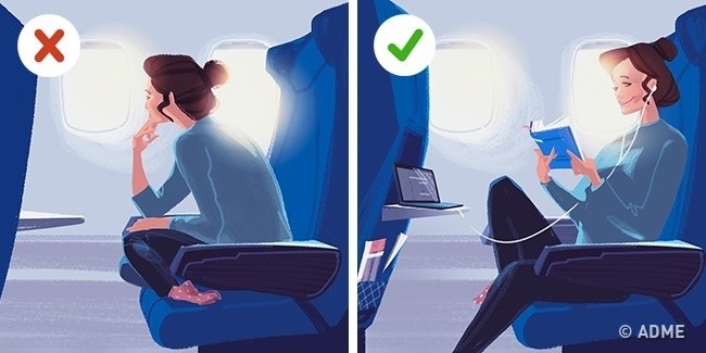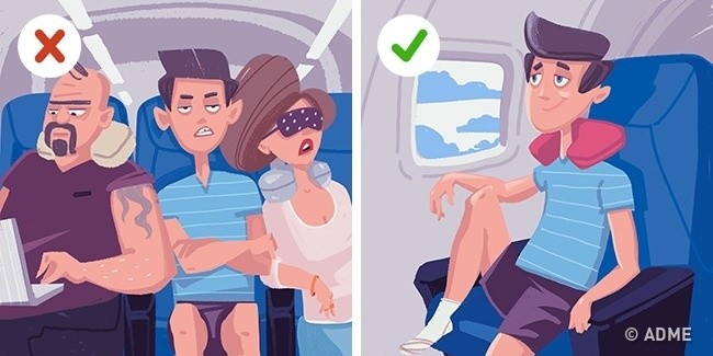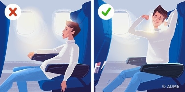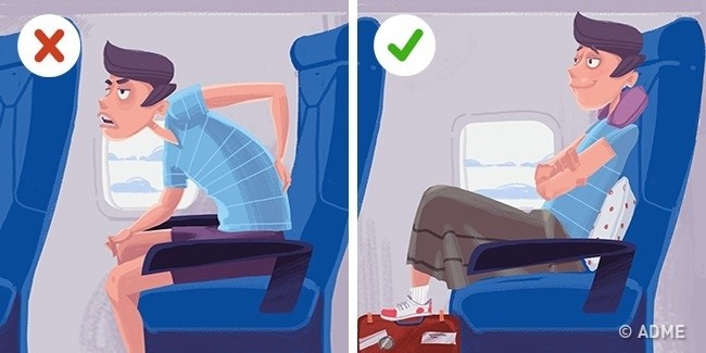 Также не забывайте: чем выше ноги относительно пола, тем лучше, поэтому попробуйте поставить их прямо на собственный багаж под впереди стоящим креслом.
