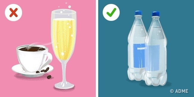 Возьмите с собой воду, исключите употребление кофеина и алкоголя