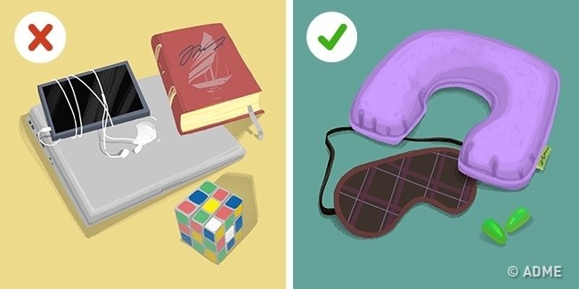 Вместо массивных гаджетов вроде большого ноутбука и нескольких толстых книг лучше возьмите с собой в салон самолета сумку с полезными в полете вещами. С ними даже в эконом-классе вам удастся выспаться и отдохнуть: