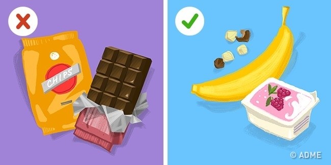 Низкий уровень давления и влажности на борту приводит к снижению чувствительности вкусовых рецепторов. Именно по этой причине авиакомпании добавляют в свои обеды большое количество специй, соли и сахара, и это не всегда идет на пользу. Подумайте о перекусе, который удобно взять с собой в самолет: фрукты, орехи, йогурт.